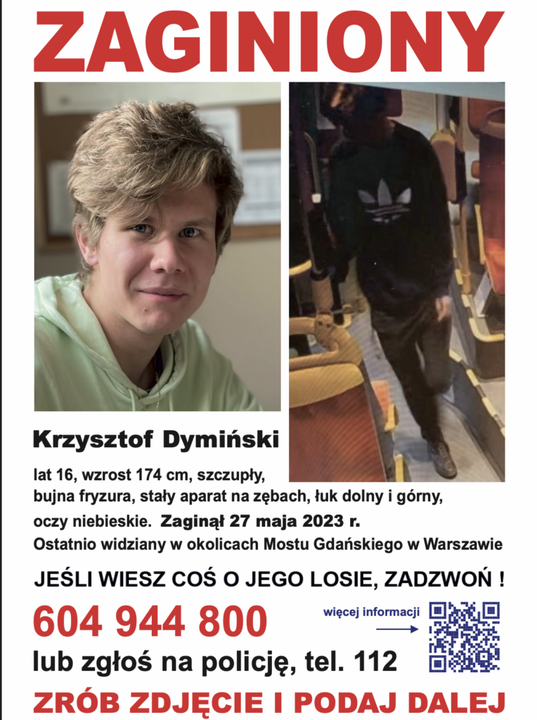 - Znaki szczególne: bujna fryzura, stały aparat na zębach łuk dolny i górny